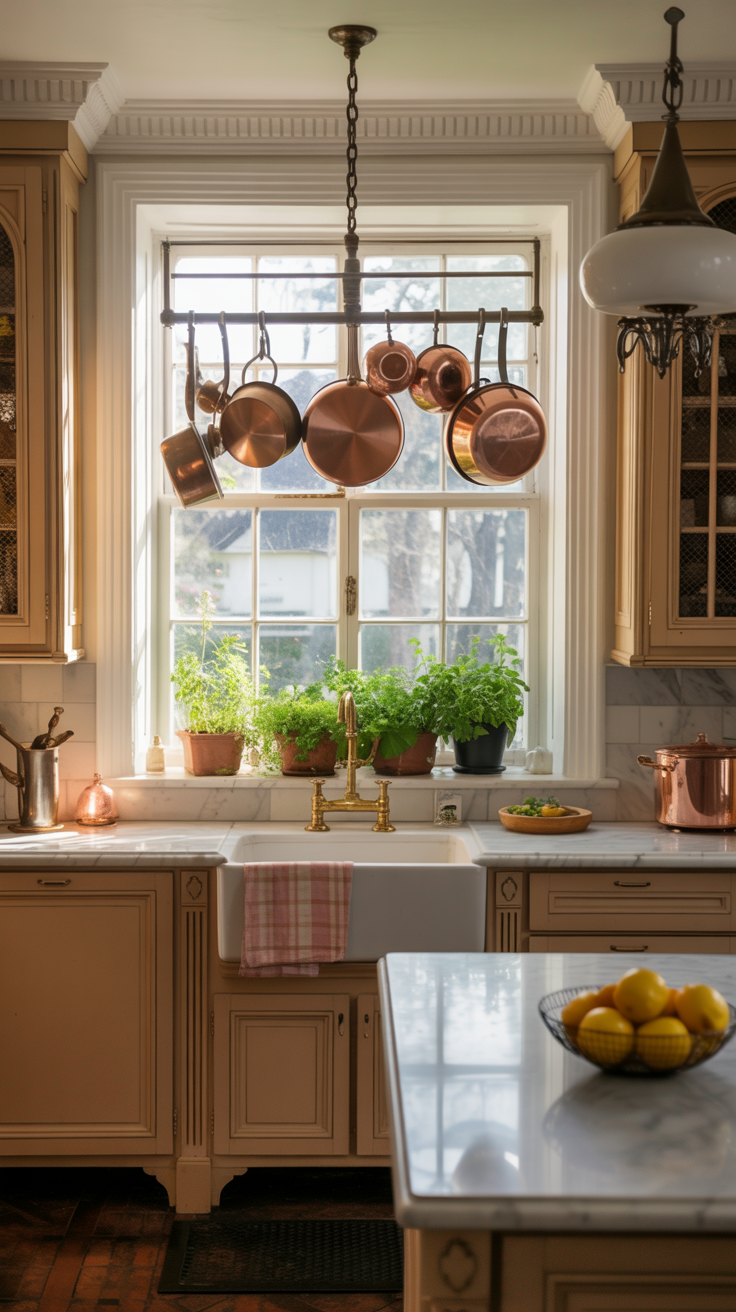 15. Cage-style cabinets: Cage-style cabinets are typically found in dining room furniture but have found their place in many classic kitchens. The additional storage space they provide on the countertop is one of the things homeowners won’t want to miss out on.